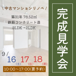 9/13 ( 土 )・14 ( 日 )・15 ( 月祝 ) の3日間中古マンションのフルスケルトン現場見学会を開催いたします! 【 見どころ 】 すまingで新たにリノベ再販が決定した中古マンションの解体が終わりフルスケ […]