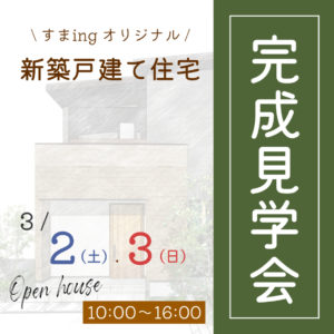 2024年3月2日(土)3日(日)にて新築戸建ての完成見学会を開催いたします! 土地面積■𝟭𝟵𝟲.𝟯𝟲㎡(約𝟱𝟵坪)建物面積■𝟭𝟬𝟬.𝟱𝟯㎡ (約𝟯𝟬坪)間取り■𝟯𝗟𝗗𝗞駐車可能台数■𝟯台 見どころ① ☑𝟮𝗪𝗔𝗬の玄関収 […]