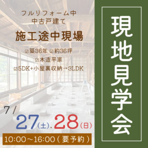 2024年7月27日(土)28日(日)フルリフォーム中の平屋中古戸建て施工途中現場の現地見学会を開催いたします! 見どころ ・築36年物件の耐震補強・外張り断熱による付加断熱工事の様子なかなか見られない貴重な姿をぜひご覧 […]