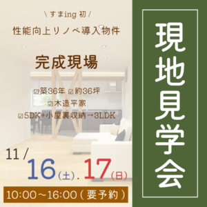 2024年11月16日(土)17日(日)平屋中古戸建て完成現場の現地見学会を開催!築36年の物件を耐震補強&フルリノベーションいたしました。 見どころ ・外張り断熱の付加断熱による性能向上リノベ・フルリノベーションによる […]