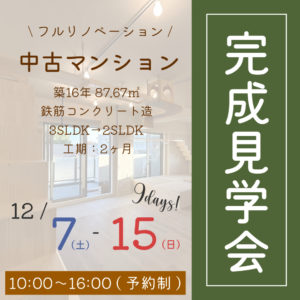 2024年7月13日(土)14(日)15日(月祝)フルリノベーション済み中古マンションの完成見学会を開催いたします! \フルリノベーション /築32年 69.16㎡鉄筋コンクリート造3LDK→2LDK工期2ヶ月 R […]