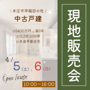 2025/4/5(土)6(日)にて築3年 平屋中古戸建の現地販売会を開催いたします! \ 人気の早稲田の杜エリア /価格■5,400万円(税込)延床面積■約38坪間取り■3LDK構造■木造平屋建築年月■2021年7月(築 […]