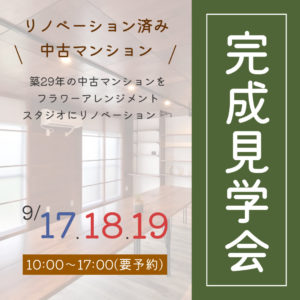 2022年9月17日(土)・18日(日)・19日(祝)に 築29年の中古マンションをフラワーアレンジメントスタジオにリノベーションした完成見学会を開催致します! 見どころ① ☑全て造作にした建具☑二重サッシの代わりの床か […]