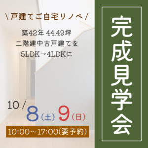2022年10月8日(土)9日(日)にて戸建てご自宅リノベの完成見学会を開催いたします! 見どころ① ☑隣の和室と繋げた22帖のLDK☑グレー色×木目調のペニンシュラキッチン☑サッシからの熱移動を防ぐための二重窓 築42 […]
