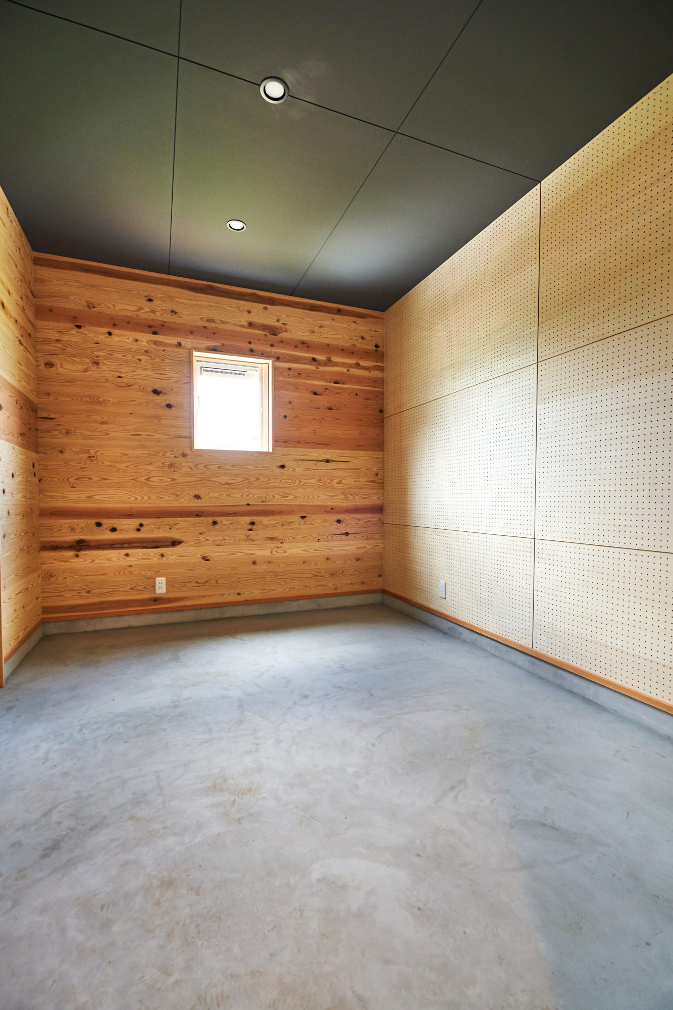壁一面に穴が空いた有孔ボードを採用し、フックを差し込めばオリジナルウォール収納が完成します。壁面収納で細々した物をスッキリ片付ければ、収納量もアップして空間をさらに有効活用できます。