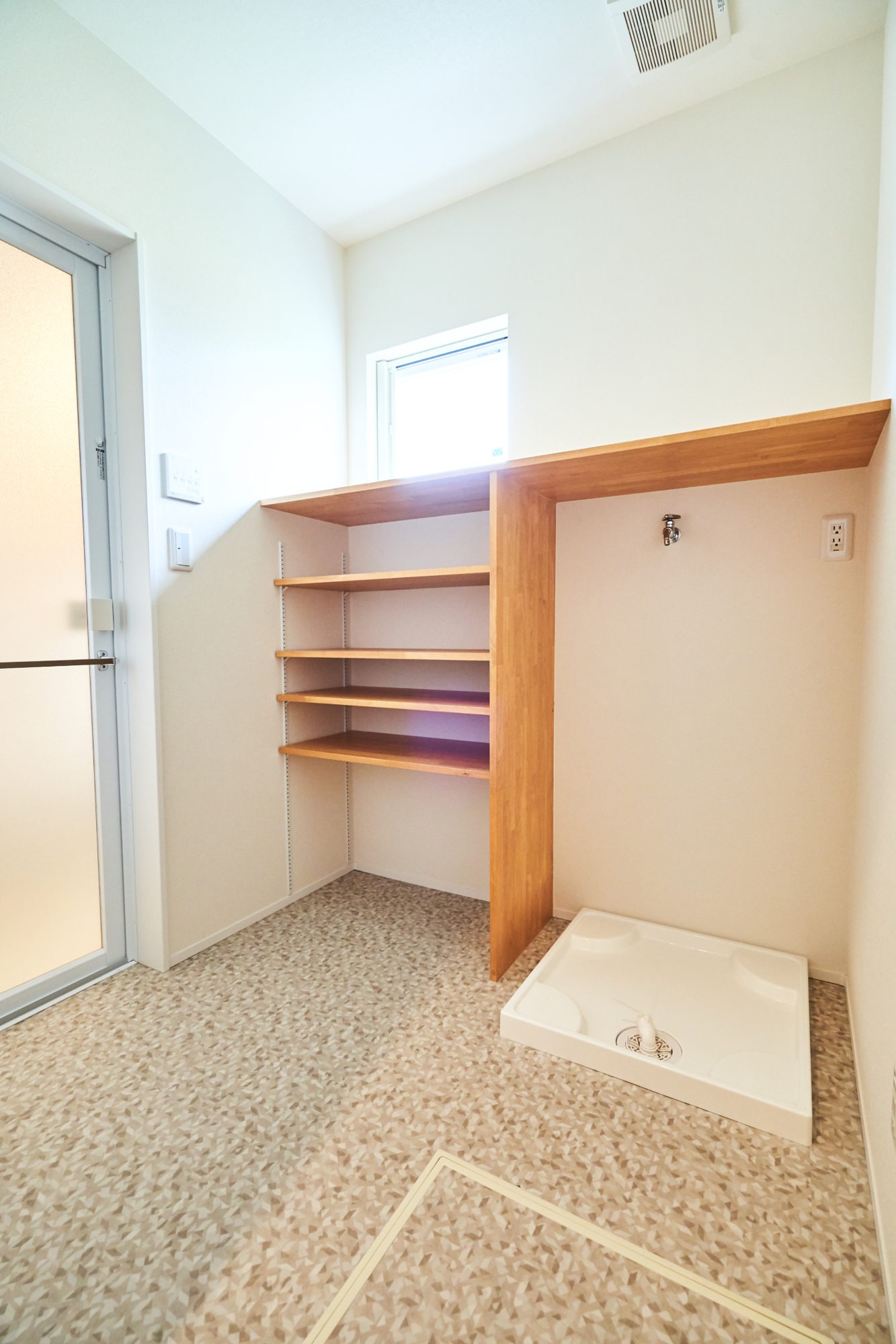 キッチンはダイニング側と浴室・洗面側の両方からアクセス出来る回遊式。行き止まりがないので、家族の動きもスムーズになります。家事は毎日のことですから動きやすい家事動線はくらしの効率アップにつながります。