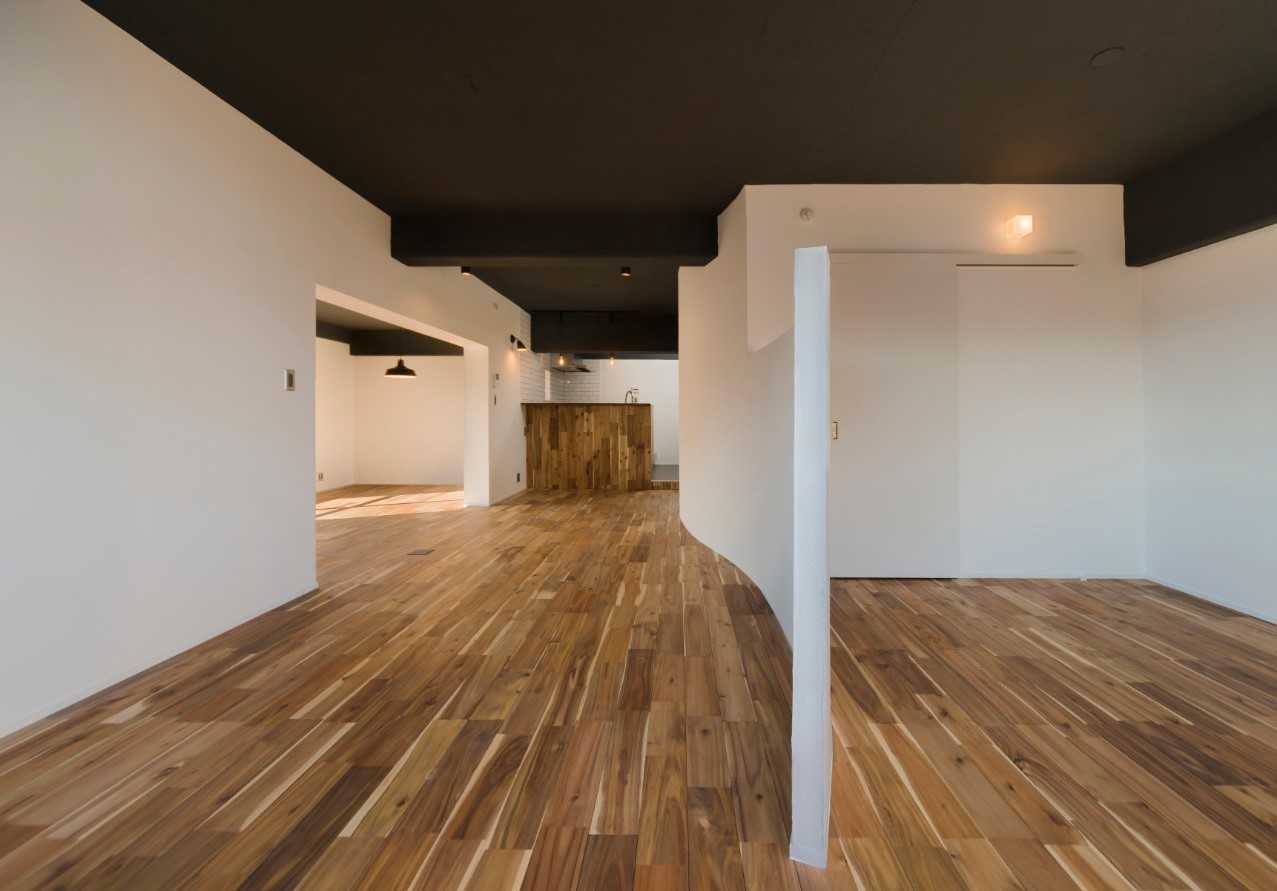 アクセントになっている中心のウェーブ状の仕切りでお部屋全体に柔らかさをプラス。