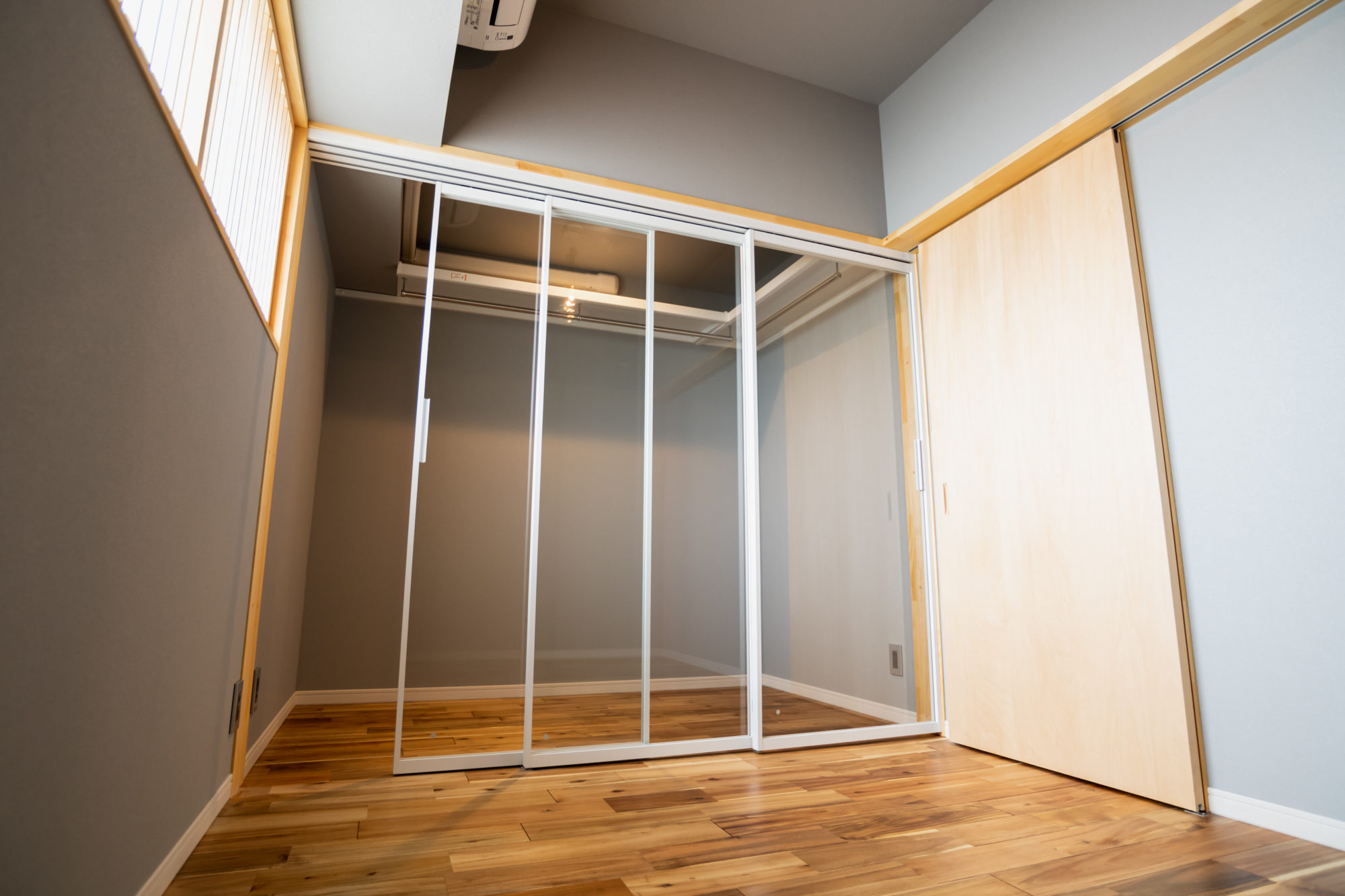 寝室の収納扉はクリアなものをチョイスすることで、圧迫感がなくお部屋が広く感じられます。