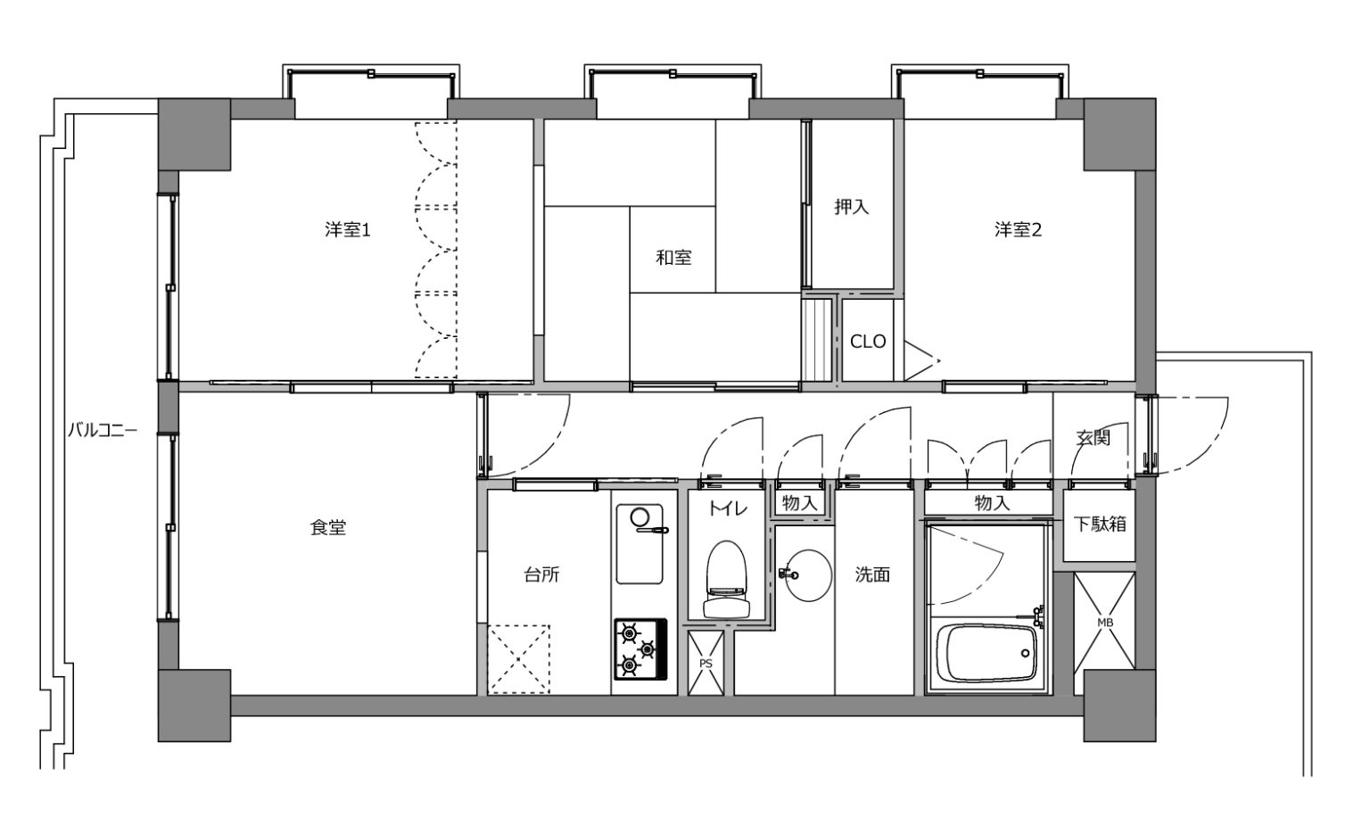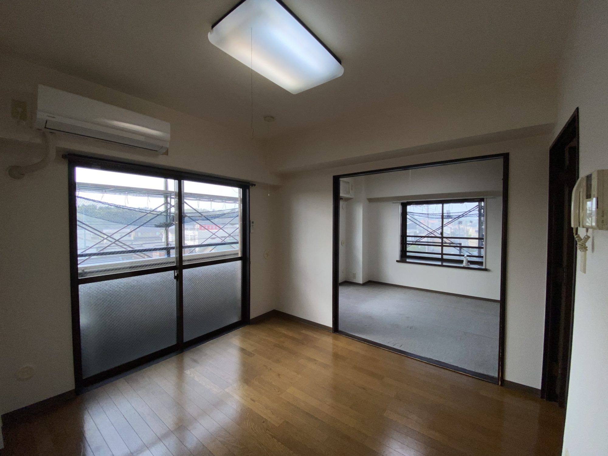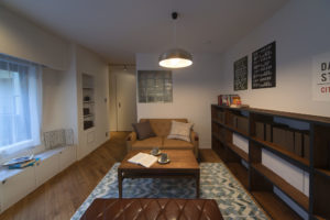 元々はダイニングキッチンの隣にカーペット敷きの居室があり、壁と引き戸で仕切られている空間でした。南西向きの大きな窓があり陽当たりは良いものの、なんだかあまり明るくない雰囲気。リノベーション後は間仕切りを完全になくし、陽当たりも風通しもよく明るく開放感のあるLDKに生まれ変わりました。