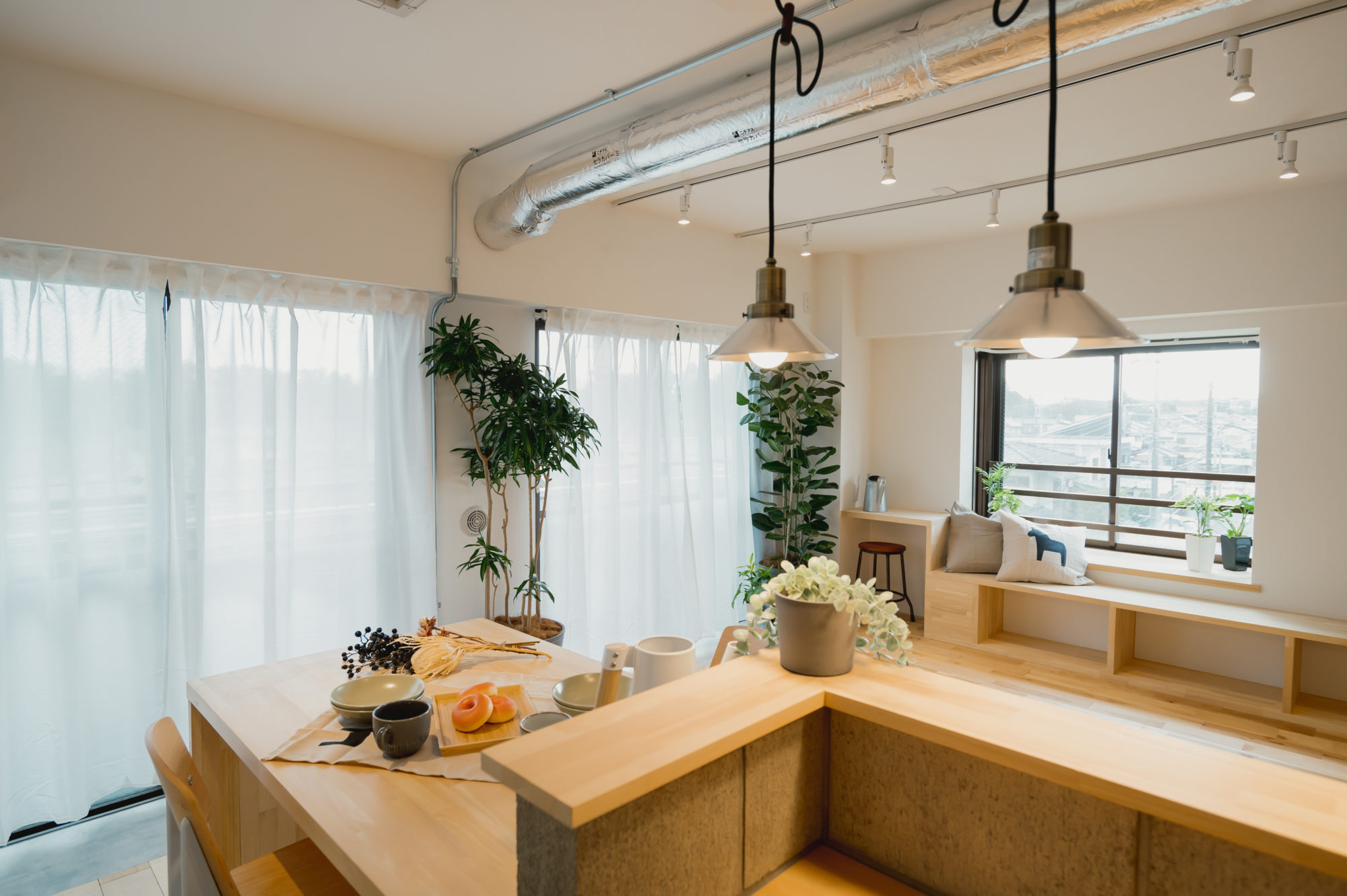 壁付けで狭く、動線も悪いのが難点だったキッチン対面式のアイランドキッチンに。キッチンカウンターと一体型のダイニングテーブルを造作したことで、カウンター部分でお仕事をしたり、テーブルでゆっくりお食事をしたりと、人数や目的によって自由に使い分けることが可能になりました。質感などにもこだわり、全体的に統一感のあるキッチンスペースに仕上がっています。