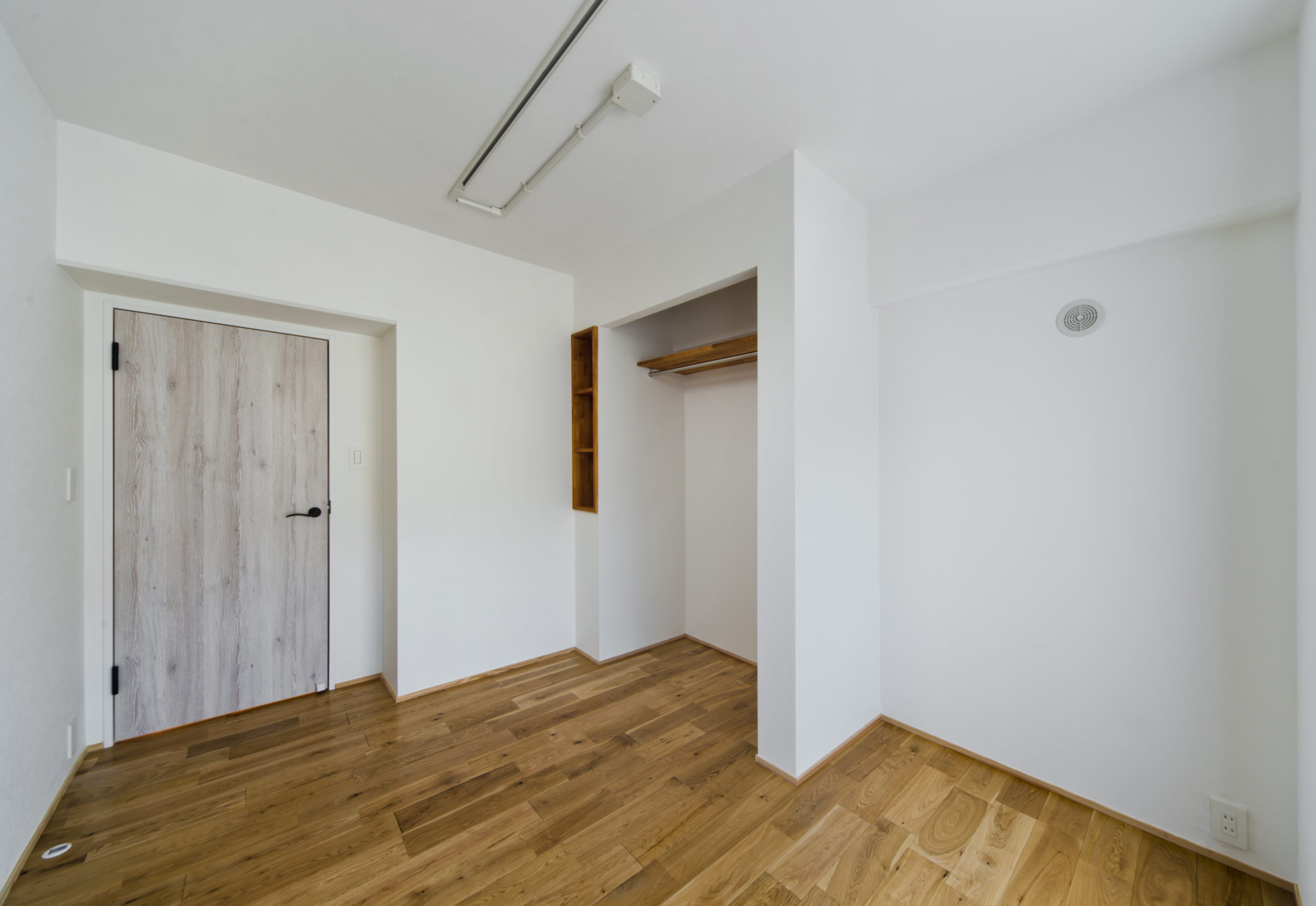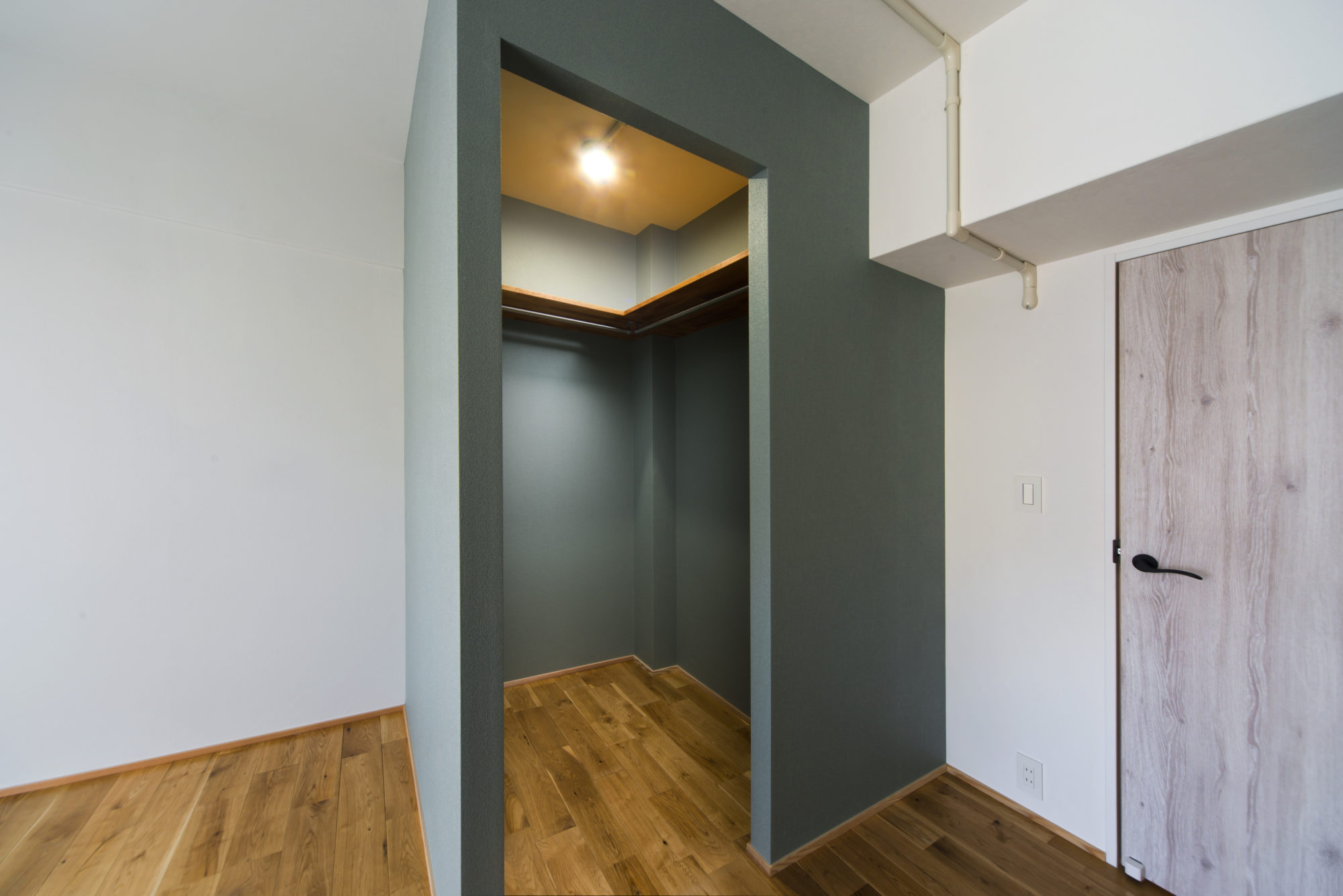居室は二部屋。LDKとテイストを合わせた色使いでありながら、WICは全面にグリーンの