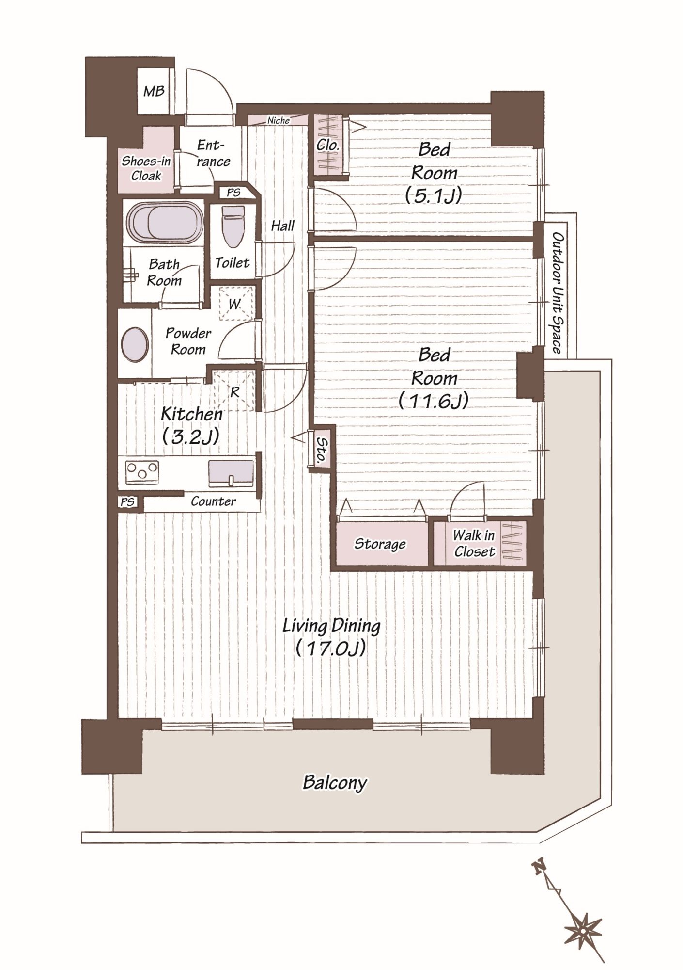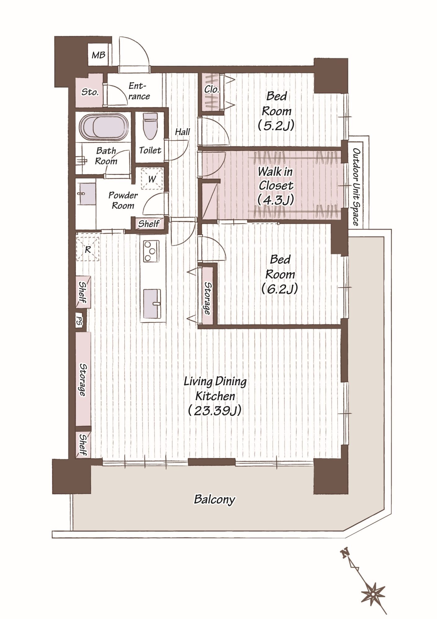| 間取り | 2LDK→2LDK+WIC |
