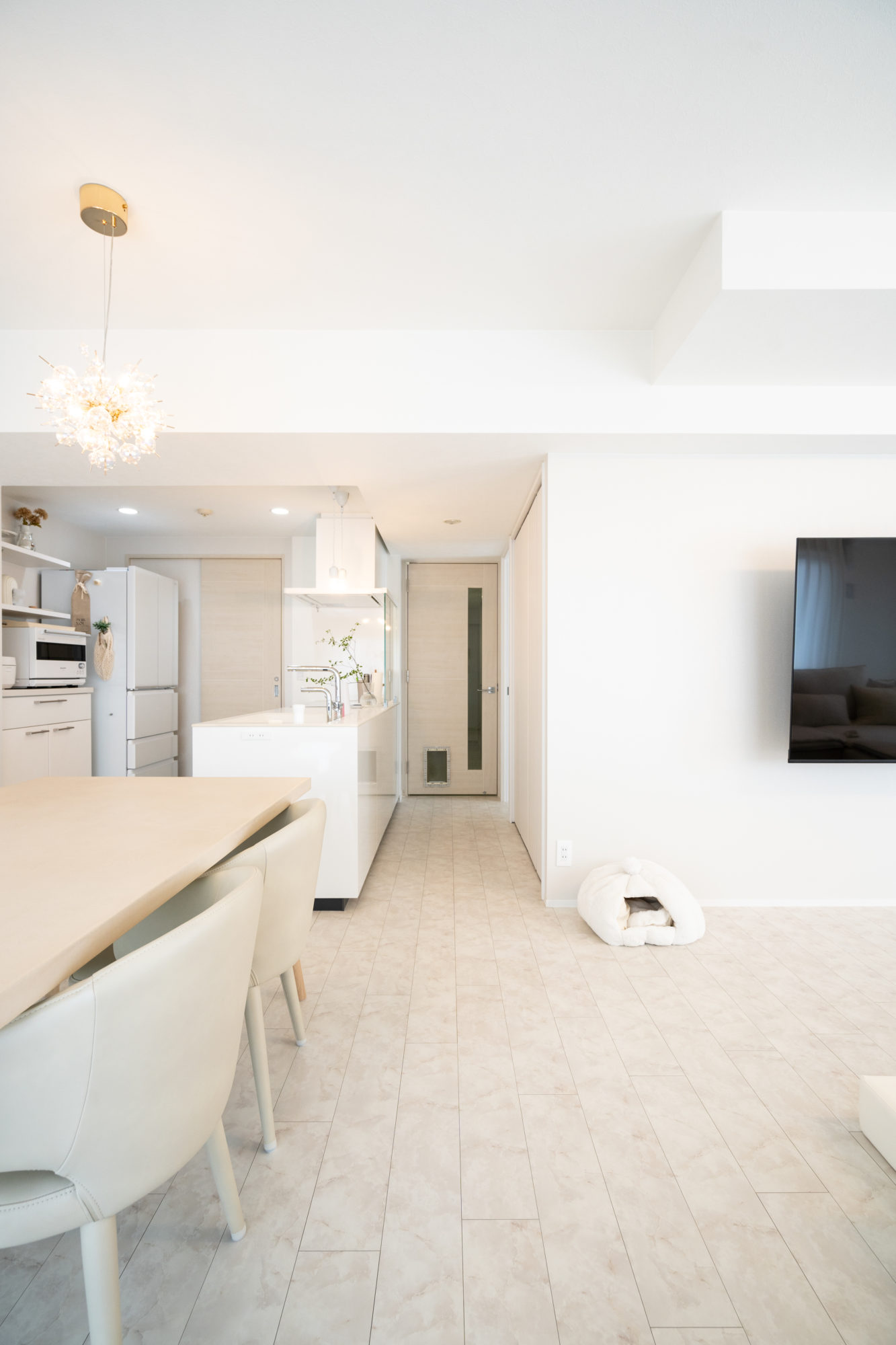 ベッドルームの収納部分を撤去してリビングに取り込むことで、LDKを広くしました。