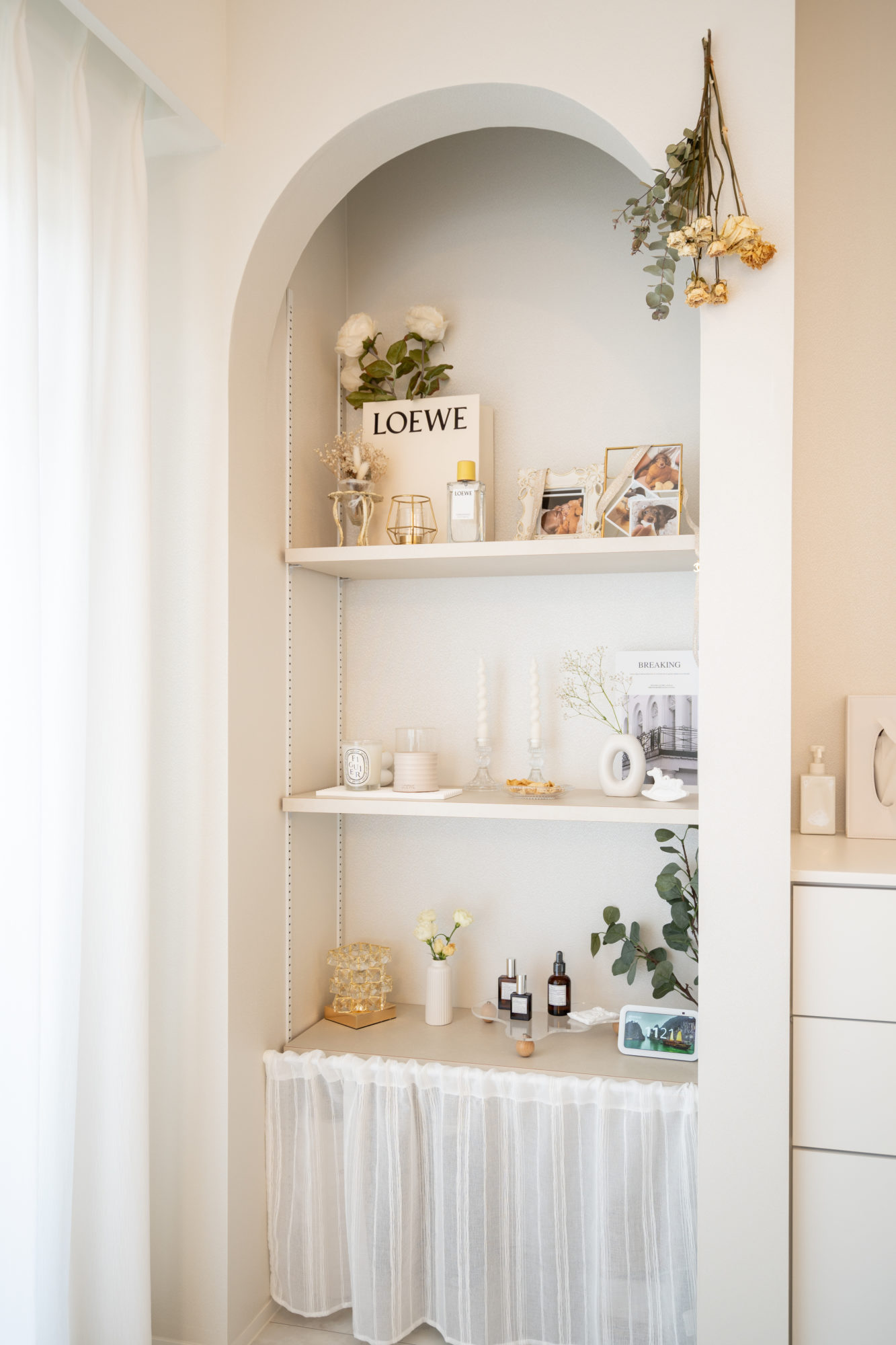 お気に入りのアーチ型ニッチと照明器具。
