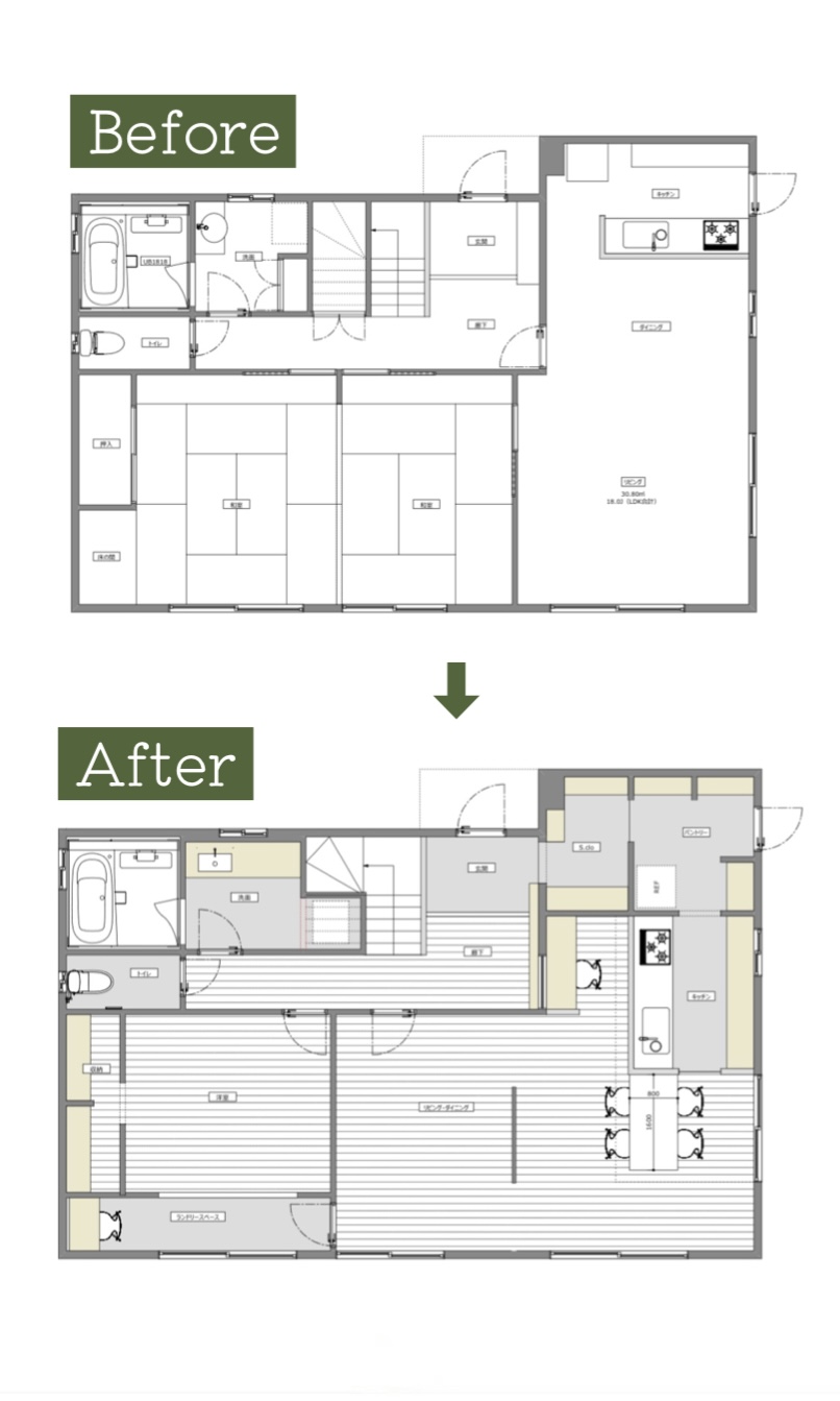 大幅な間取り改良により、リノベーションならではの”自分好み”の素敵なおうちが完成しました。