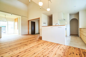 自然素材感じる開放的なワンフロアリビングのおうち